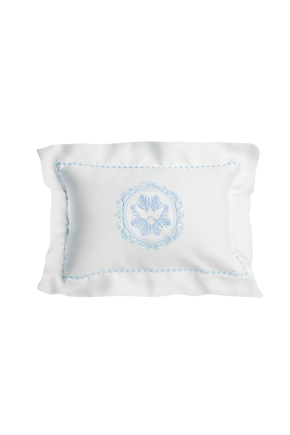 Almofada com enchimento em tecido branco com bordado azul Espírito Santo. Medidas: 30 x 40 cm