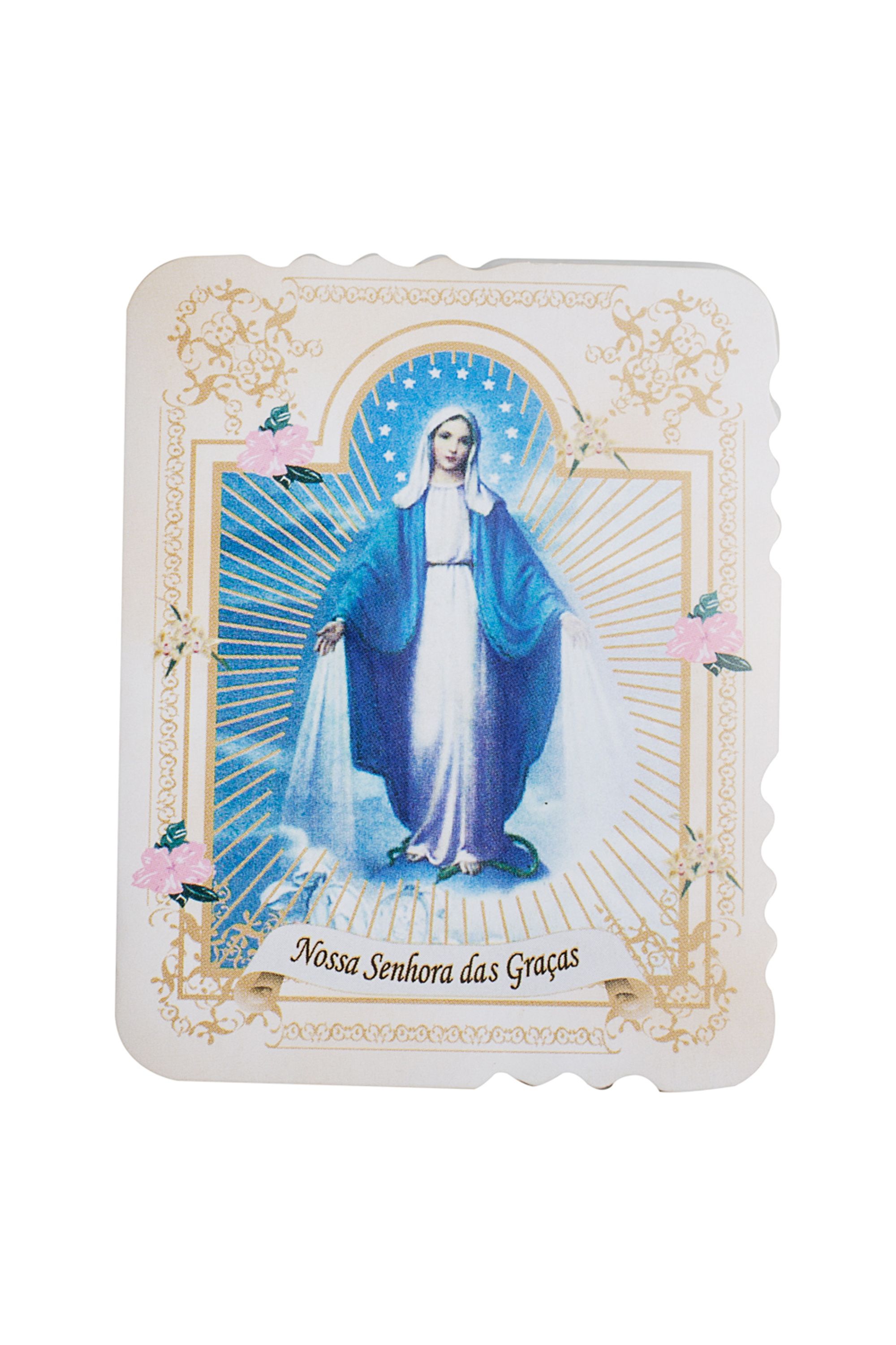 Cartão de Nossa Senhora das Graças 7,5 x 6 cm com medalha 25 mm.