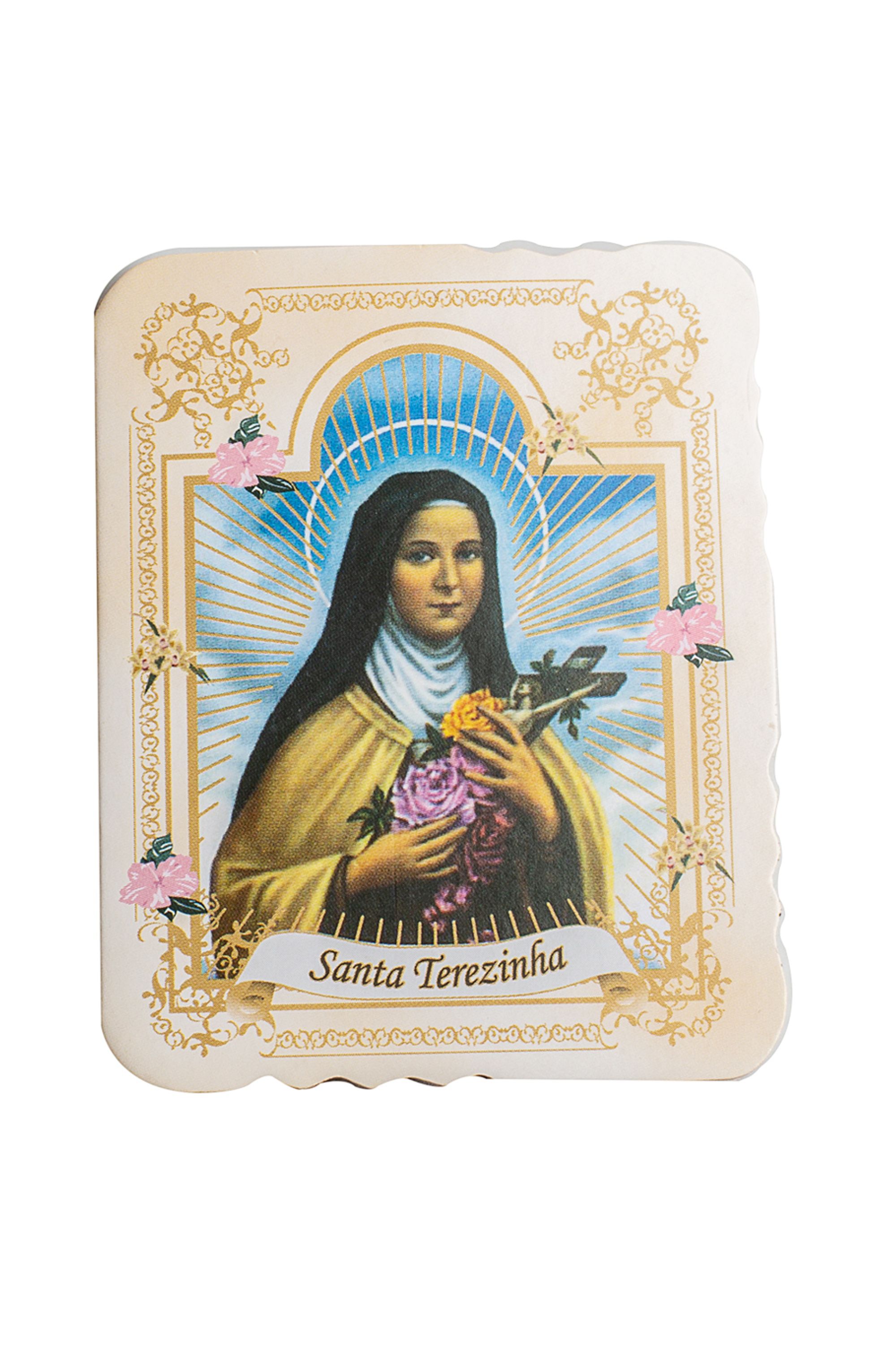 Cartão Santa Terezinha 7,5 x 6 cm com medalha 25 mm.