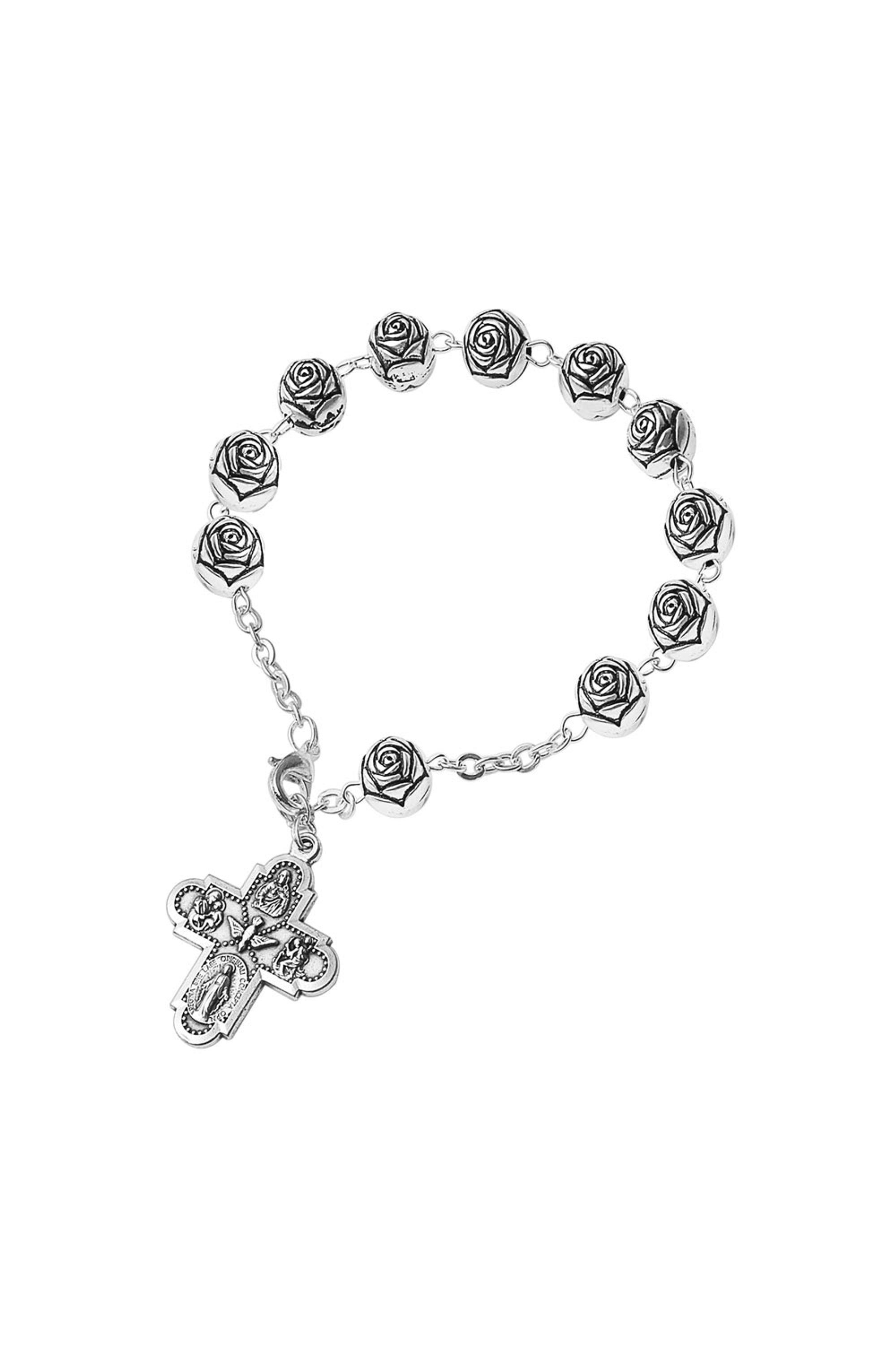 Pulseira Dezena de Terço com rosas 6 mm e Cruz do Cristão em metal.